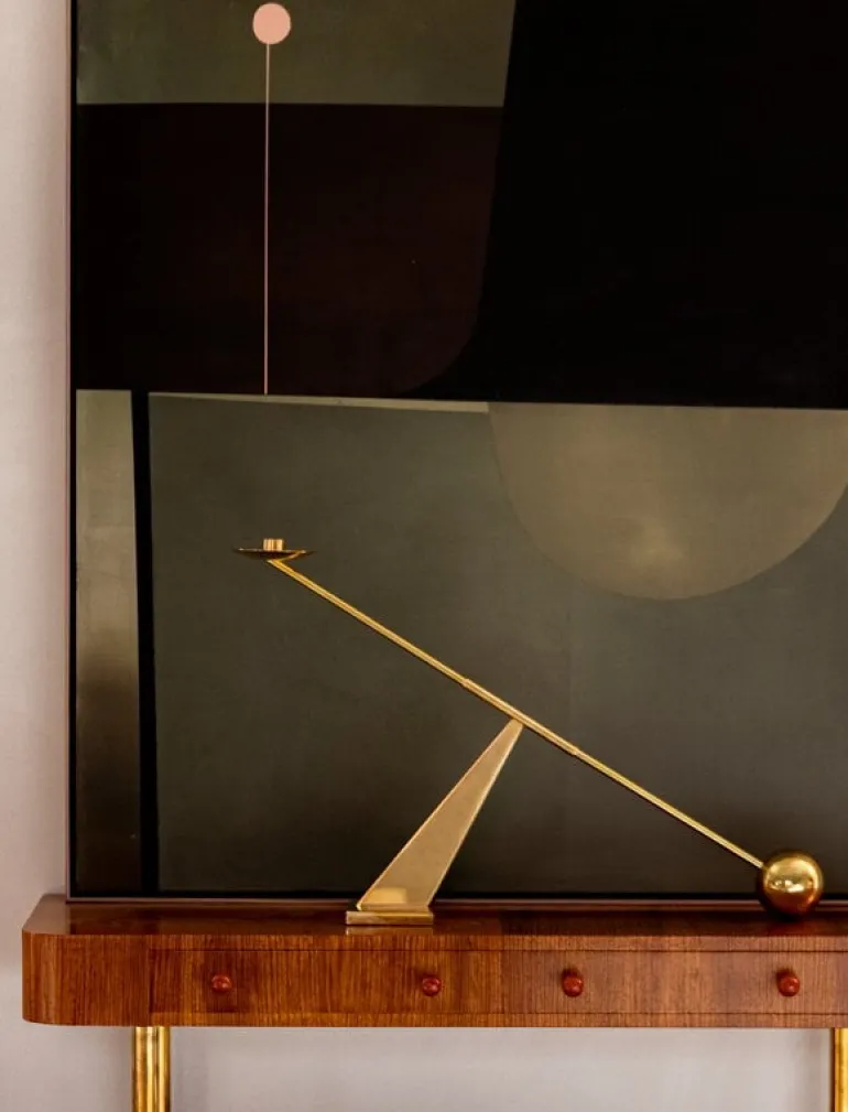 Audo Copenhagens ljusstake Interconnect leker med kontrasterna mellan enkla geometriska former och överdrivna proportioner. Designad av Colin King, kombinerar den strömlinjeformade metalliska ljusstaken runda element med vinklar av varierande grader. Ljusstaken Interconnect gör ett fantastiskt intryck som ett centrum med ett enda smalt ljus, och tack vare sin skulpturala silhuett kan den också användas som ett dekorativt objekt även utan ett ljus.