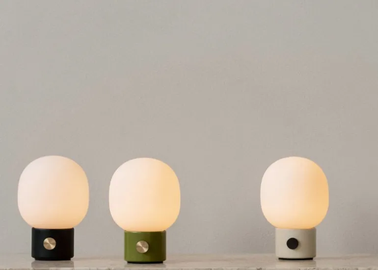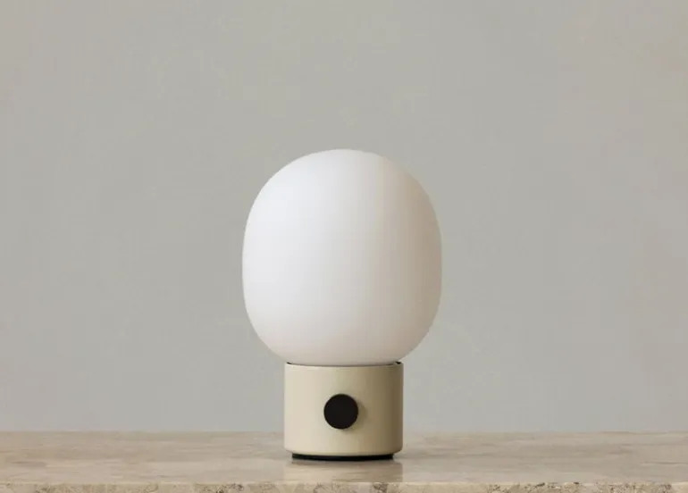 JWDA Portable är en sladdlös bordslampa som är lätt att placera var du vill, till exempel på matbordet eller i ett rum utan el. Lampan laddas med en USB-kabel och är också kompatibel med Audo Copenhagens laddningsplatta. För längre batterilivslängd rekommenderas det att stänga av lampan när den laddas och att inte lämna den inkopplad under användning.