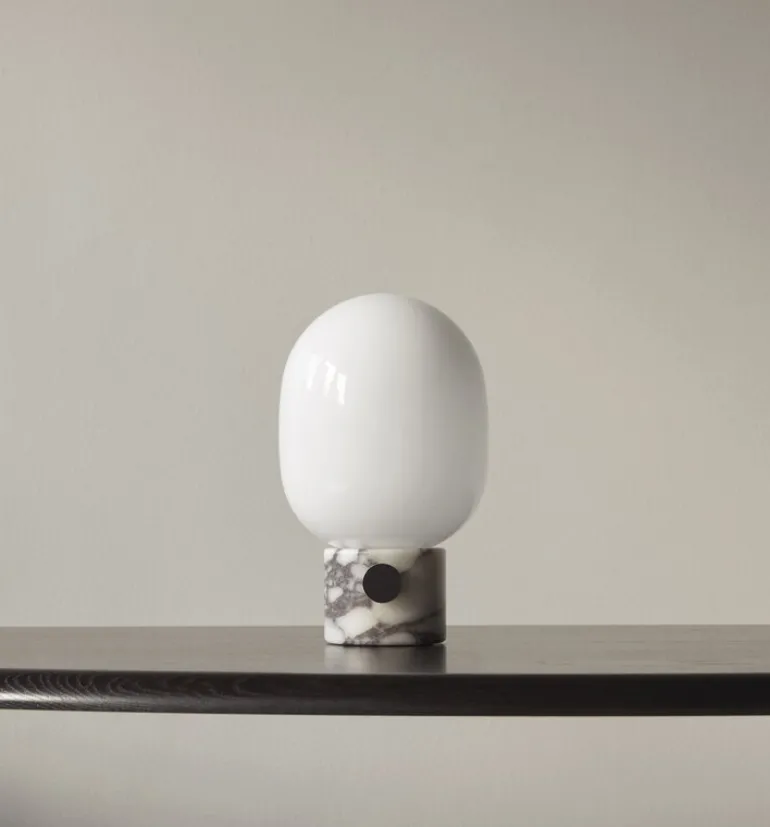 Bordslampan JWDA från Audo Copenhagen är en trivsam, elegant och kompakt ljuskälla med en fot i stål, en rund skärm i opalglas och en ratt som fungerar både som strömbrytare och dimmer. Den moderna bordslampan, som designats av Jonas Wagell, hämtar inspiration från de traditionella oljelamporna. JWDA lyser upp rummet med ett dämpat sken, och är ett perfekt komplement på soffbordet eller nattduksbordet.