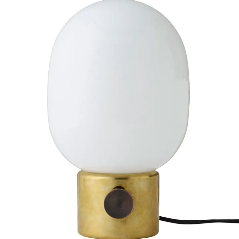 JWDA-bordslampan från Audo Copenhagen är en trivsam, elegant och kompakt ljuskälla med mässingsfot, rund skärm i opalglas och en ratt som fungerar som strömbrytare och dimmer. Den moderna bordslampan, som designats av Jonas Wagell, hämtar inspiration från de traditionella oljelamporna. JWDA förser alla utrymmen med mjukt ljus, och den blir det perfekta tillägget till soffbordet eller nattduksbordet.