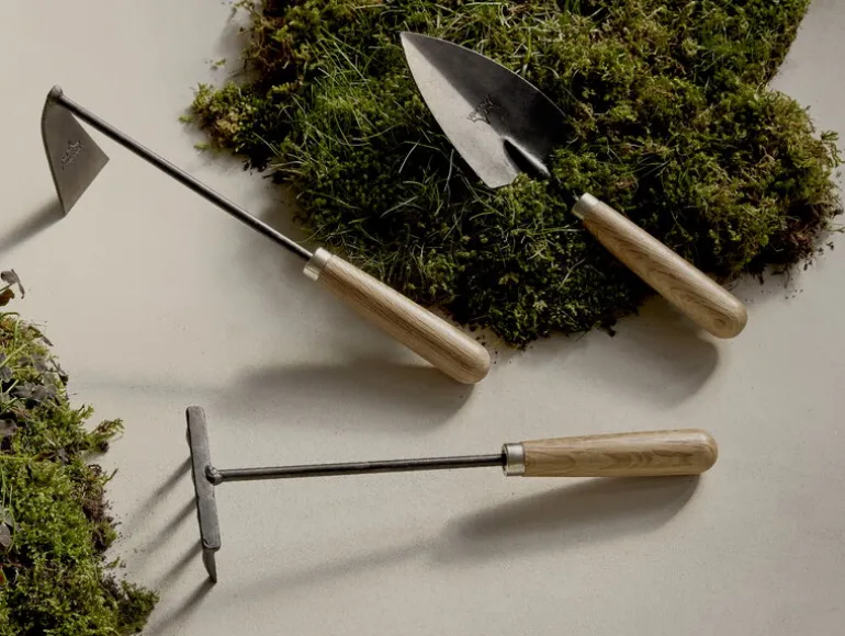 Setet med de tre planteringsredskapen ingår i en trädgårdskollektion som formgetts genom ett samarbete mellan Audo Copenhagen och Pallarès. Spanska Pallarès är mest känt för sina kvalitetsknivar och kvalitetsredskap, något som företaget har producerat i över 100 år.