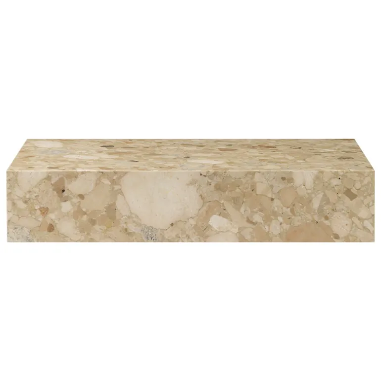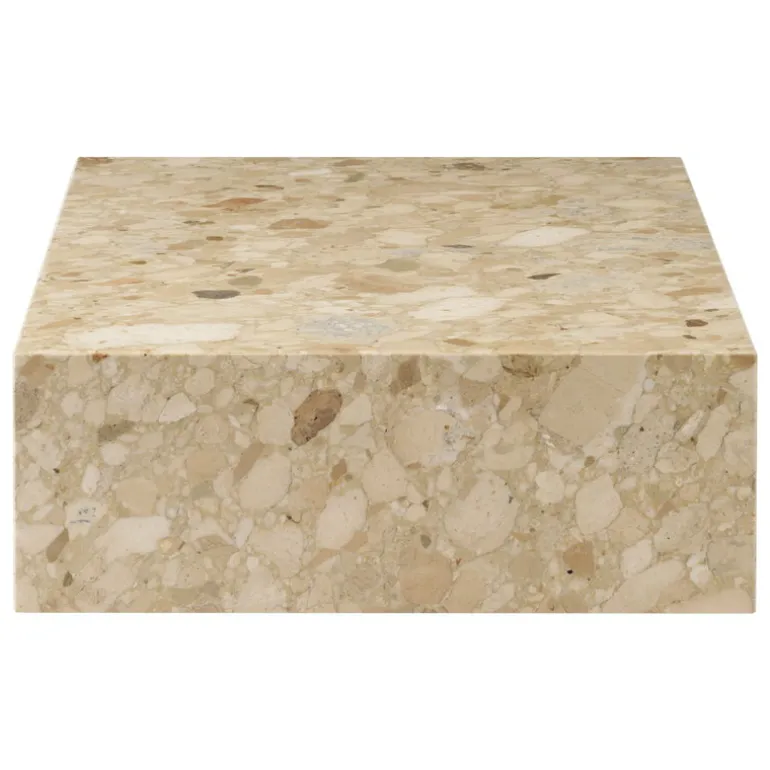 Audo Copenhagens tidlösa Plinth Grand-bord i marmor är en mångsidig, praktisk konversationsstartare som garanterat fångar blicken. Det generöst stora Plinth Grand kan användas som ett soffbord, ett sidobord, eller helt enkelt som ett imponerande fristående element. Den ljusreflekterande, polerade ytan och den strikta, geometriska formen skapar en intressant kontrast till marmorns tunga, organiska utseende. Designad av Norm Architects, hyllar Plinth-kollektionen marmorns naturliga, detaljerade skönhet. Varje stycke är unikt, och blir ännu mer unikt med patina över åren.