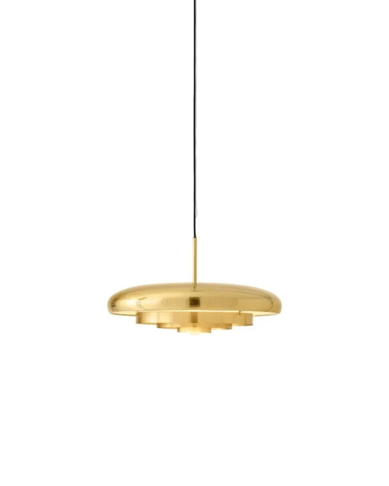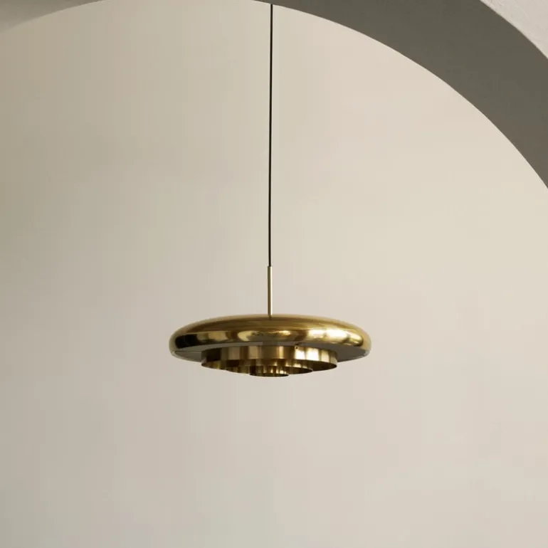 Audo Copenhagens taklampa Resonant är en minimalistisk och slående blickfångare som designades av Alf Svensson och Yngvar Sandström. Den eleganta lampan har en böjd skärm som riktar bländfritt ljus nedåt, vilket skapar en varm, inbjudande atmosfär runt den. Den skulpturala Resonant är den perfekta stämningshöjaren för hemmet såväl som i offentliga utrymmen, från hotellfoajéer till restauranglounger. Taklampan är tillverkad av lyxig polerad mässing, som över tid kommer att få en charmig patina – vilket bara lägger till mer elegans till utseendet på armaturen.