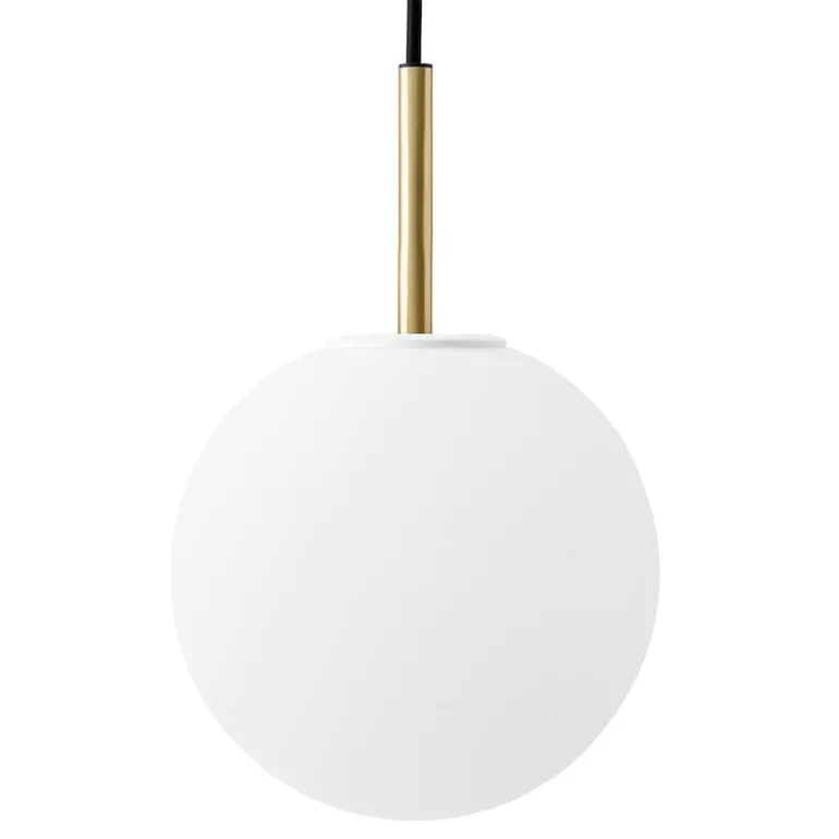 Audo Copenhagens eleganta TR Buld-pendellampa består av en TR glödlampa av opalglas, en bas i mässing och en svart kabel.