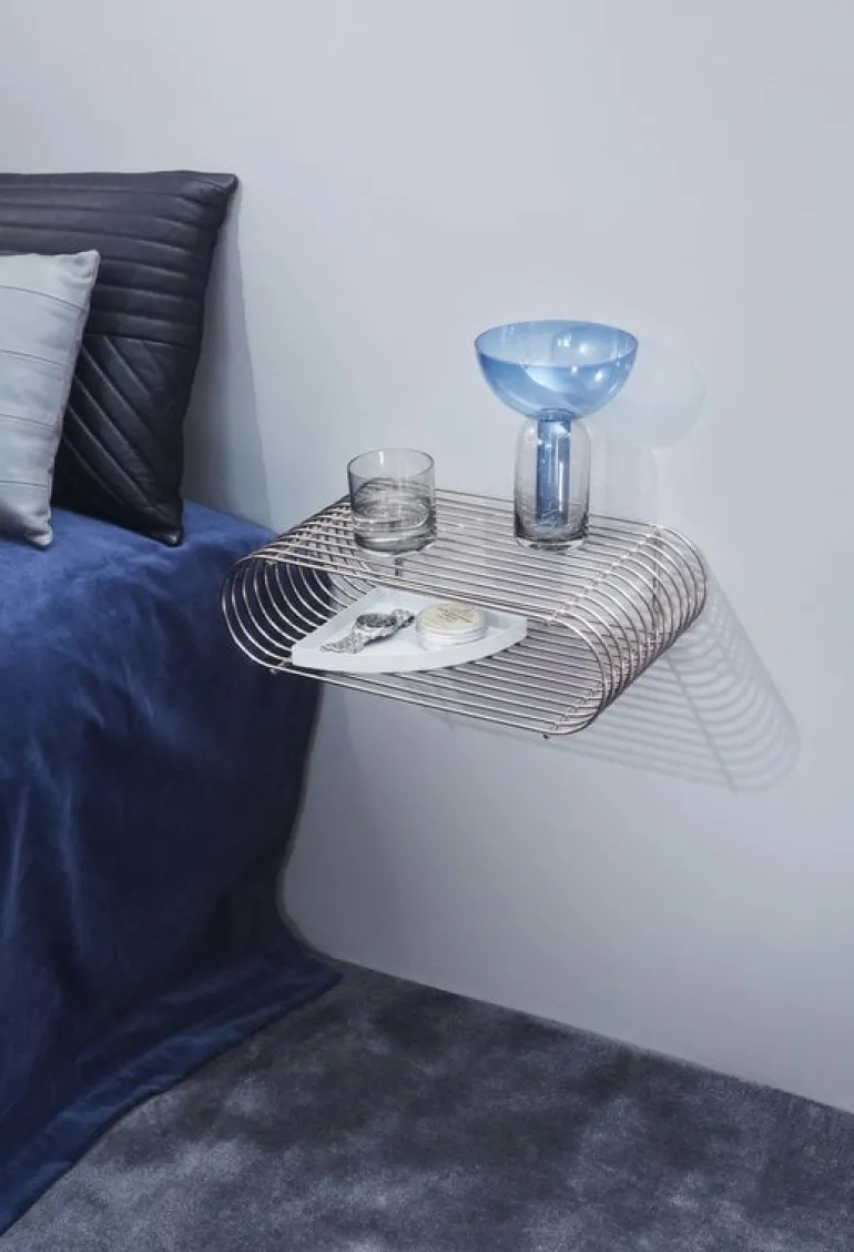 Curva-vägghyllan från danska AYTM fångar blicken med sin kurviga form och eleganta finish. Curva-hyllan är tillverkad i böjt stål och är ett djärvt, uttrycksfullt och roligt sätt att förvara och visa upp böcker, dekorationer och andra små föremål i exempelvis hallen, sovrummet eller köket.