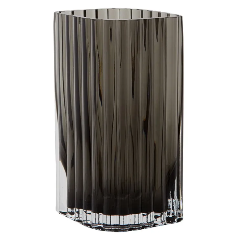 Vasen Folium från det danska varumärket AYTM har fått sitt namn och inspiration från blad i naturen, och när man ser den uppifrån ser vasen ut som ett blad. Den eleganta vasen pryds av ett böjt, vertikalt linjemönster som skapar ett fascinerande design på vasens yta. När solen träffar glaset sprider vasen vackra skuggor och reflektioner runt omkring sig och fungerar som en distinkt dekorativ artikel även utan blommor.