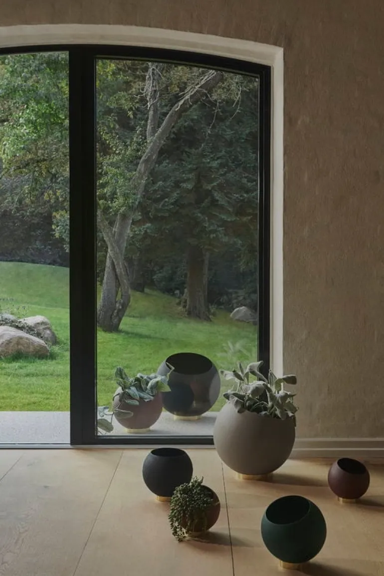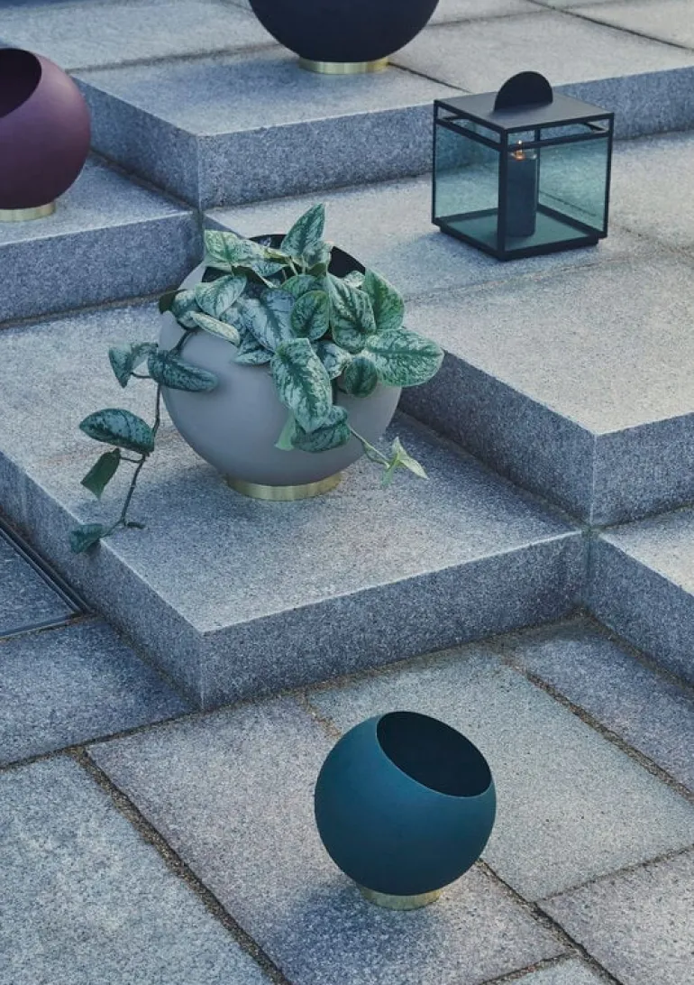 Globe-blomkrukan från danska märket AYTM är en fascinerande, rund vas i stål som står på en mässingfärgad järnbas. Blomkrukan passar perfekt för hemmaplantor och blommor, du kan även använda den till förvaring av mindre föremål. Blomkrukan kommer i olika storlekar och nyanser, och passar vackert i kombination med andra glasvaser från Globe-kollektionen.