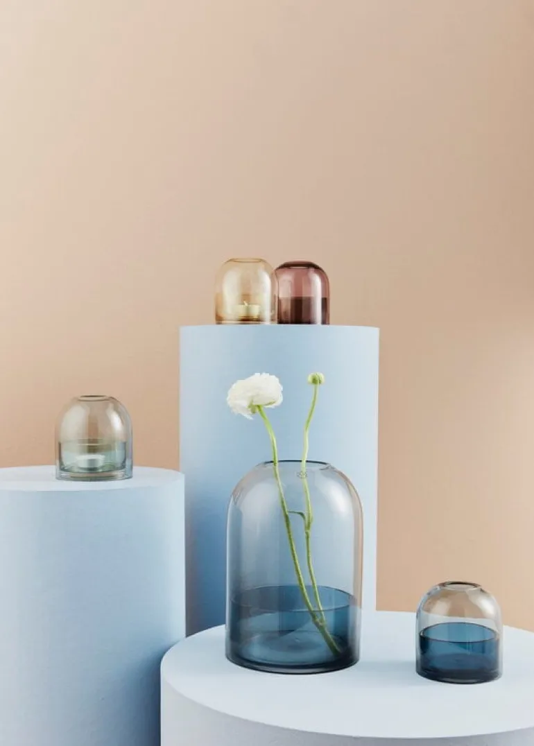Tota-lyktan från danska AYTM ger skönhet och värme till inredningen med sina vackra färger och mjukt formade glasyta. Tota utgörs av två glasskålar i olika färger, vilket skapar en intressant och unik färg hos ljuset. Lyktan är tillgänglig i olika färgkombinationer och två olika storlekar: den mindre storleken är perfekt för värmeljus och den större är designad för att rymma ett blockljus. Istället för ljus kan du även placera en liten växt eller dekoration inuti lyktan.