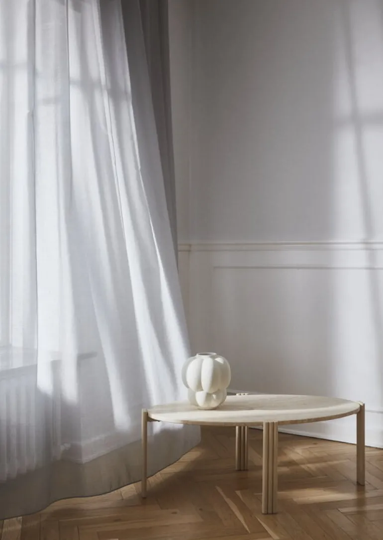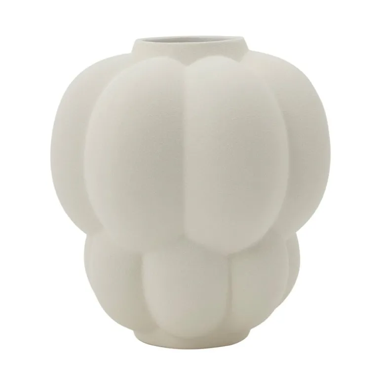 Vasen Uva från AYTM drar till sig både uppmärksamhet och beundran med sin ovanliga, rundade form. Vasen, som inspirerats av vinrankans eleganta former, har passande nog fått namnet ”Uva”, som betyder just det. Vasen Uva är tillverkad i stengods och den vackra, gräddvita ytan tillsammans med den charmiga designen accentuerar blommornas skönhet. Det sällsamma utförandet är dessutom en fröjd i sig själv, även utan tillbehör. Uva-vasen fungerar utmärkt tillsammans med praktfulla buketter och dekorativa kvistar, eller som charmig prydnad på egen hand.