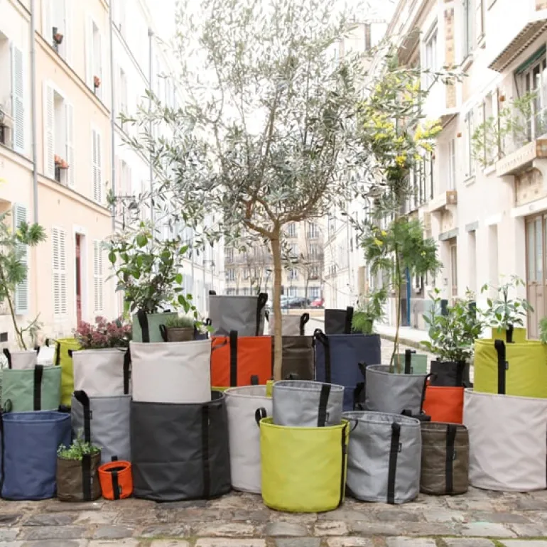 Bacsacs blomkrukor och odlingslådor har skapats av designern Godefroy de Virieu och landskapsarkitekterna Virgile Desurmont och Louis de Fleurieu, som beslutade sig för att ta fram en ny, prisvärd och enkel lösning för stadsodling – Bacsac är ett lättviktsalternativ till traditionella, tunga odlingslådor. Det återvinningsbara Batyline-tyget är genomsläppligt och låter jorden andas och vattnet rinna igenom, vilket är vad växterna behöver. Materialet är gjort i dubbla lager, är UV-beständigt, frosttåligt och har hög motståndskraft mot revor.