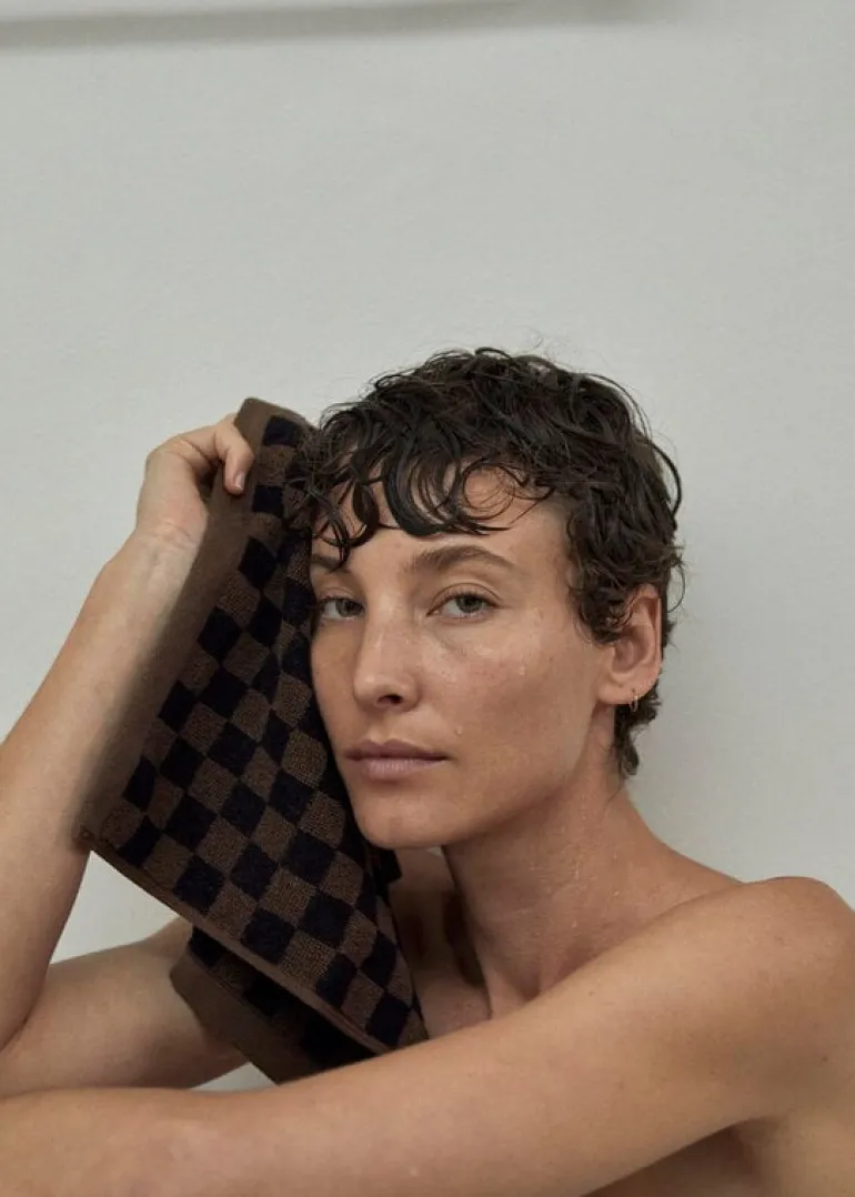 Ansiktshandduken Quill från Baina har ett klassiskt, tvåfärgat schackrutigt mönster som utstrålar en lyxig, nostalgisk charm. Denna fyrkantiga frottéhandduk är tillverkad av fluffig, tjock ekologisk bomull och har en perfekt balans mellan absorberingsförmåga, mjukhet och snabb torktid.