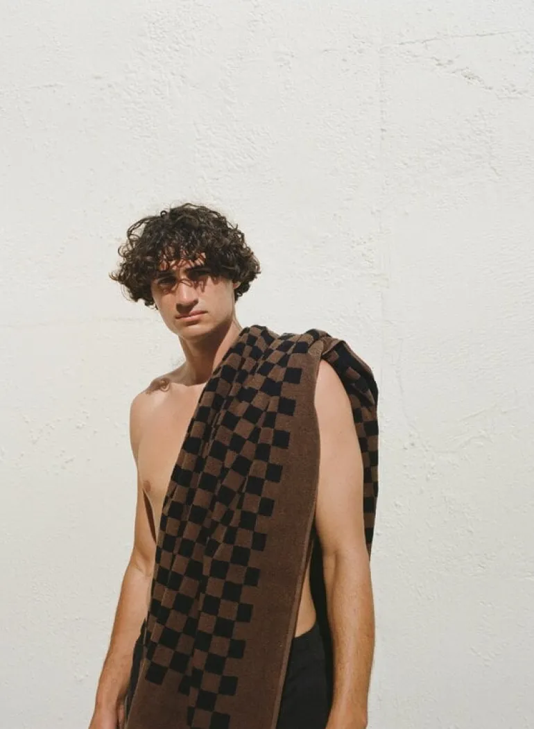 Strandhandduken Roman från Baina har ett klassiskt, rutigt mönster i två toner som utstrålar en lyxig, nostalgisk charm. Handduken är tillverkad i tjock, ekologisk bomullsfrotté som absorberar, är mjuk och torkar snabbt. Den stora handduken är perfekt att svepa in sig i efter ett dopp, oavsett om det är vid poolen eller på stranden.
