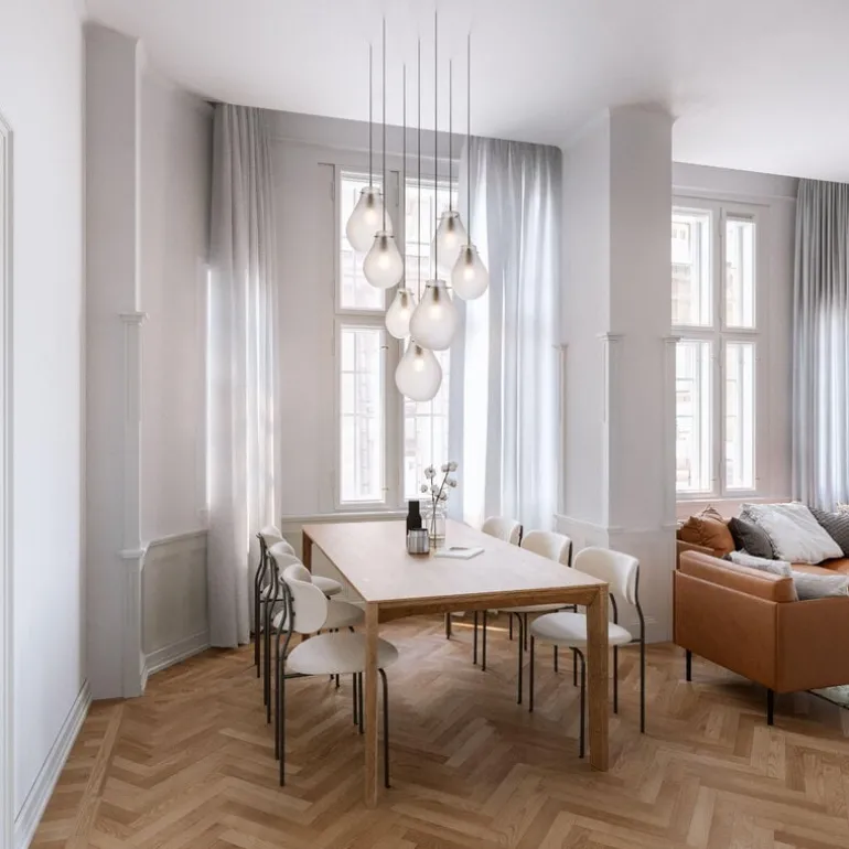 Bommas pendellampa Soap fångar upp den lekfulla lättheten och flyktiga skönheten hos tvålar. Designad av Ota Svoboda, är pendellampan tillverkad av kristallglas genom en formfri teknik där man blåser glaset med munnen. Denna unika process ser till att varje del är helt unik – precis som varje tvålblåsa! Soap-pendellampan gör ett fantastiskt intryck på egen hand, men blir ännu mer strålande när den grupperas med andra pendellampor.