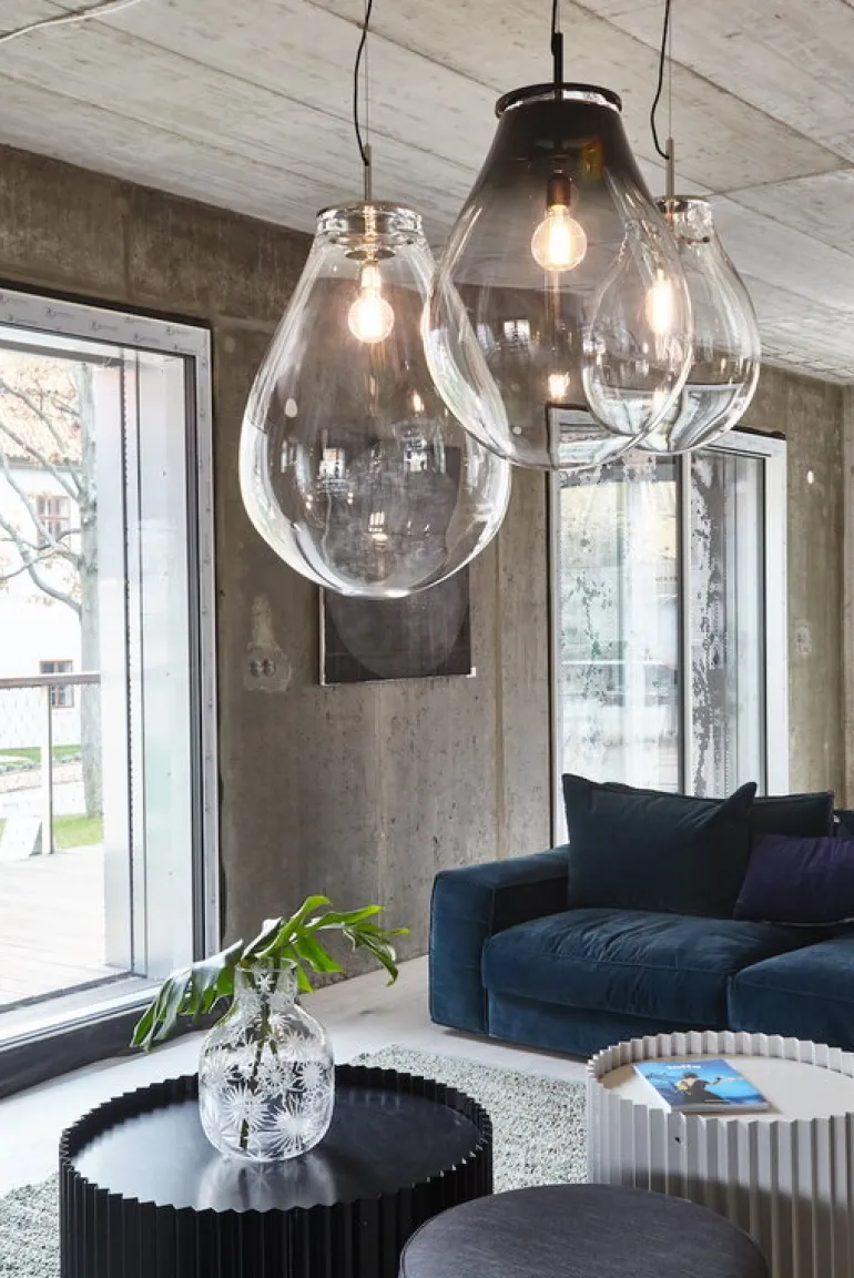 Bommas pendellampa Tim fångar blicken med sin slående enkelhet och djärva närvaro. Den överdimensionerade formen, kontrasterad med en liten glödlampa, skapar en fängslande visuell balans, som ytterligare förstärks av de silverfärgade stålinslagen som ger djup och harmoniska detaljer. Hantverket bakom den munblåsta kristallglaset framhäver den otroliga skicklighet och precision som krävts för att uppnå en så till synes enkel design. Oavsett om den visas upp på egen hand eller som en del av en glittrande klunga, så lyser pendellampan Tim upp som en fantastisk fokuspunkt i alla interiörer.