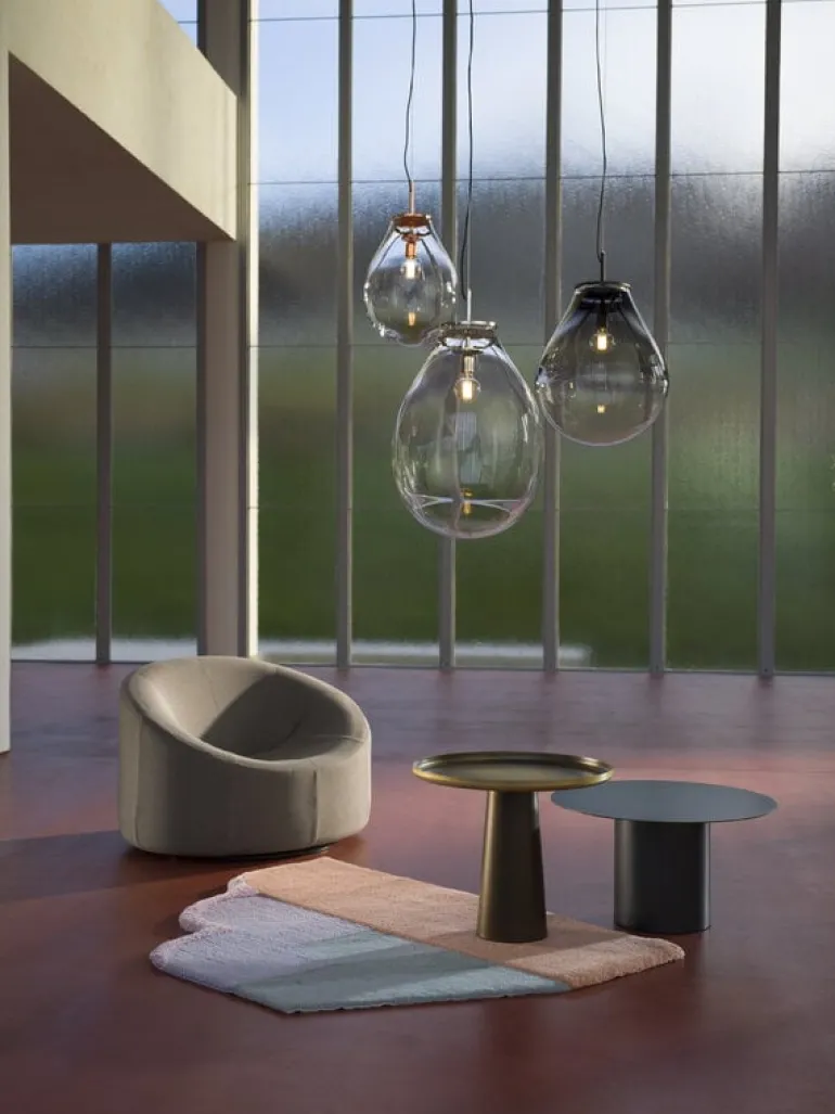 Bommas pendellampa Tim fångar blicken med sin slående enkelhet och djärva närvaro. Den överdimensionerade formen, kontrasterad med en liten glödlampa, skapar en fängslande visuell balans, medan den snyggt applicerade gradientfinishen förhöjer dess raffinerade form. Hantverket bakom den munblåsta kristallglaset framhäver den otroliga skicklighet och precision som krävts för att uppnå en så till synes enkel design. Oavsett om den visas upp på egen hand eller som en del av en glittrande klunga, så lyser pendellampan Tim upp som en fantastisk fokuspunkt i alla interiörer.