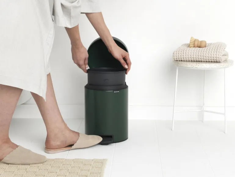 I Brabantias newIcon-kollektion finns ett stort urval av praktiska och ikoniska papperskorgar med pedal i olika färger och storlekar. De runda papperskorgarna är utrustade med innerbehållare, halkfria ben samt ett pedallock som inte slamrar och som stänger inne eventuella odörer. Papperskorgarna i newIcon-kollektionen är tillverkade i 40 % återvunnet material. Brabantia-papperskorgarna tillverkas i Belgien och garantin gäller i 10 år.