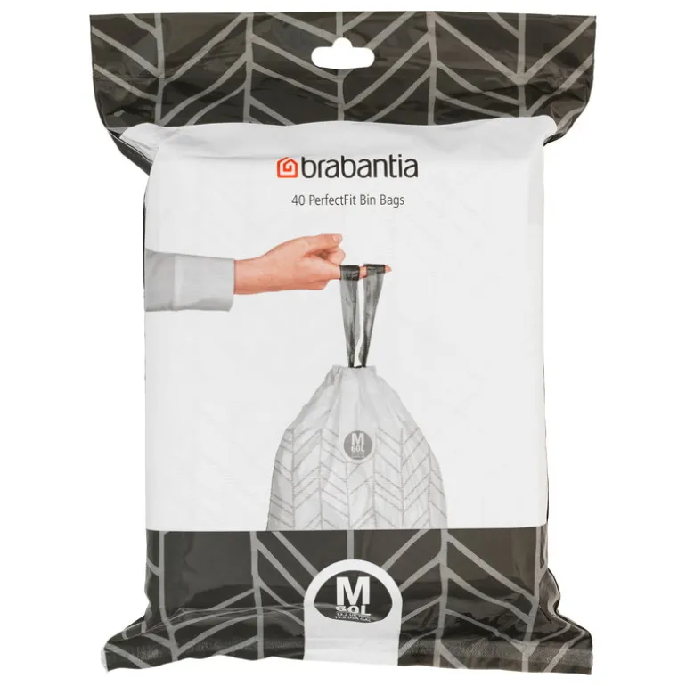 PerfectFit avfallspåsar är tillverkade av stark HDPE-plast med en integrerad bindtejp som gör det enkelt och rent att stänga och bära påsarna. Välj rätt storlek genom bokstavskoden som finns under locket på din Brabantia soptunna.
