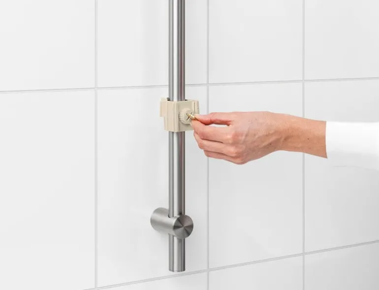 Duschhyllan ReNew från Brabantia ser till att schampot och duschtvålen alltid finns inom räckhåll. Hyllan kan enkelt monteras i önskad höjd på duschstången. Hyllan håller för upp till 2 kg – det betyder alltså att du utan vidare kan ställa flera flaskor på den! Duschhyllan har hål i botten som förhindrar ansamling av vatten.