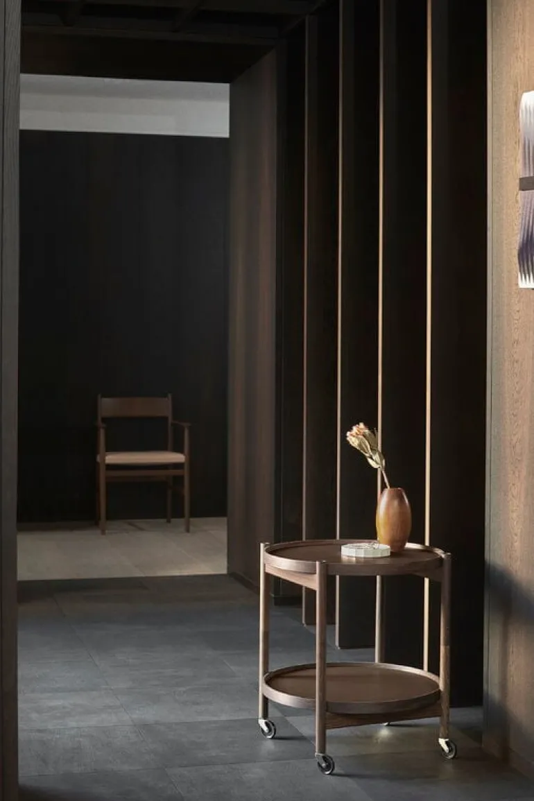 Den runda serveringsvagnen är ett bra exempel på lekfull minimalism i dansk design, med dess vändbara brickor i olika färger: du kan vända på brickorna och välja om du vill ha dem i ljus- eller mörkgrönt, eller varför inte ha en i varje färg. Att vända på brickorna är också ett enkelt sätt att uppdatera din inredning! Bølling-brickan tillverkas i Danmark.