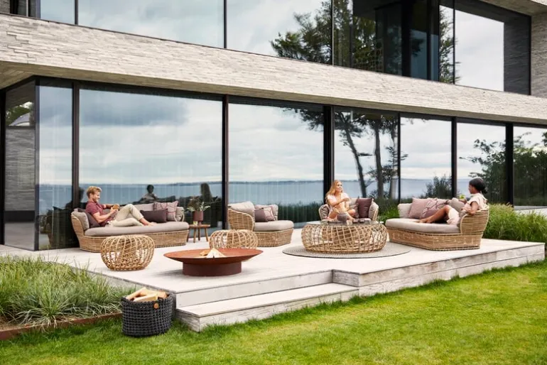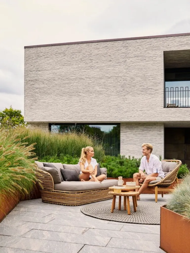 Cane-lines utomhussoffa Basket erbjuder en mysig plats att njuta av lata sommardagar, på balkongen eller i trädgården. Den djupa sitsen är perfekt för att krypa upp i med en god bok och något uppfriskande att dricka. Soffan är skapad av Søren Rose Studio och designen är inspirerad av traditionella korgmöbler, med slitstarka material som står emot växlande väder. Soffans stålram omges av vädertåligt Cane-line Weave, Cane-lines eget syntetiska material i rottingstil. De bekväma soffkuddarna är speciellt utformade för utomhusbruk. Efter en regndusch torkar kuddarna och blir fluffiga igen på ungefär en timme.