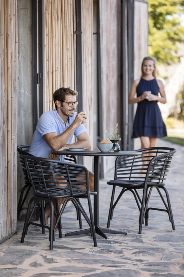 Utomhusfåtöljen Blend, från Cane-line, blir en sofistikerad del av din inredning på uteplatsen, i trädgården eller i sommarhuset. Stolen är designad av Foersom & Hiort-Lorenzen och liknar rottingmöbler eller andra traditionella trädgårdsstolar – men den är faktiskt tillverkad av slitstarkt aluminium som är enkel att sköta om. Resultatet blir en utomhusstol med en modern och distinkt design som samtidigt ser något bekant ut. Förutom utomhus kan stolen Blend även användas inomhus och kan även göras ännu mer bekväm med en stoldyna, som säljs separat.