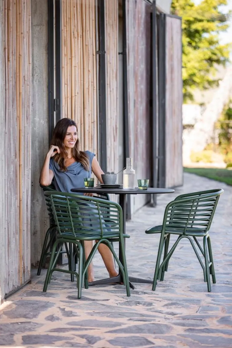 Utomhusfåtöljen Blend, från Cane-line, blir en sofistikerad del av din inredning på uteplatsen, i trädgården eller i sommarhuset. Stolen är designad av Foersom & Hiort-Lorenzen och liknar rottingmöbler eller andra traditionella trädgårdsstolar – men den är faktiskt tillverkad av slitstarkt aluminium som är enkel att sköta om. Resultatet blir en utomhusstol med en modern och distinkt design som samtidigt ser något bekant ut. Förutom utomhus kan stolen Blend även användas inomhus och kan även göras ännu mer bekväm med en stoldyna, som säljs separat.
