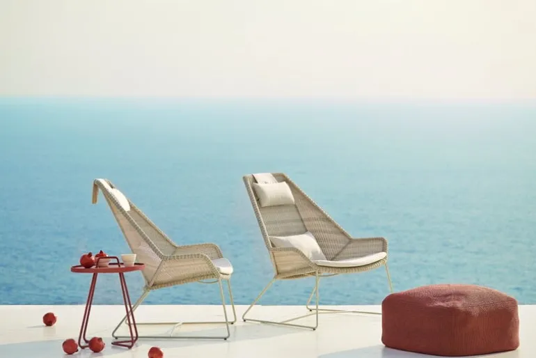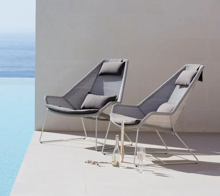 Breeze utemöbelserie kombinerar moderna utseende och stor sittkomfort med underhållsfria material. Cane-line Weave är en fiber tillverkad av färgad och slitstark polyeten. Dess vattenresistenta egenskaper gör att den tål stora temperaturskillnader, vilket gör den utmärkt för utomhusbruk. Strukturen på fibrerna och väven ger flexibilitet och komfort, och materialet är UV-resistent och övergripande underhållsfritt: det behåller sina färger och form i flera år.