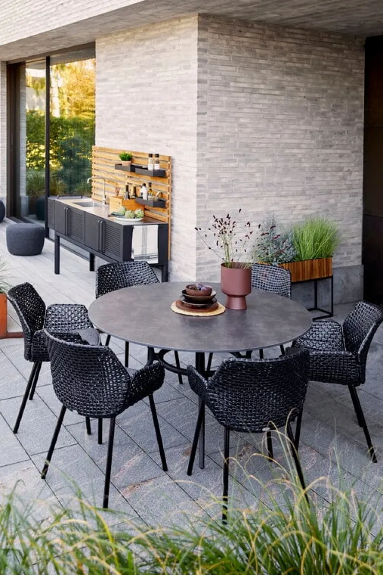 Cane-lines fotpall Circle är en multifunktionell möbel för balkongen eller trädgården. Den passar både som fotpall och som en extra sittplats, både inomhus och utomhus. Fotpallen är tillverkad av antibakteriellt och allergivänligt polypropylentyg, och fyllningen med andningsfunktion torkar snabbt. Det passar perfekt för användning utomhus, särskilt i områden där vädret kan vara ombytligt. Under vintern, eller när det är dåligt väder, rekommenderas det att förvara fotpallen inomhus.