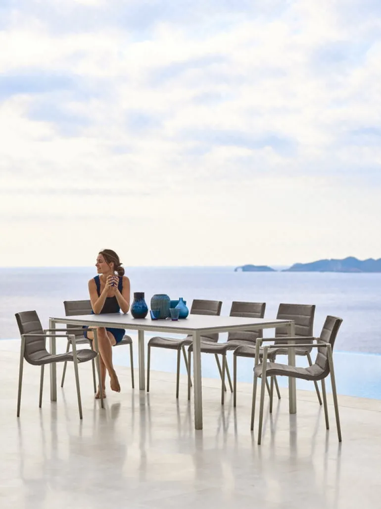 Core-stolens sits är stoppad med antibakteriellt QuickDryFoam och klädd i Cane-lines AirTouch-akryltyg, som kombinerar en mjuk yta med en stark struktur. Tack vare sin raffinerade design passar Core stolen väl för uteplatser och balkonger i alla stilar. De stapelbara stolarna är lätta att förvara utan att ta mycket plats.