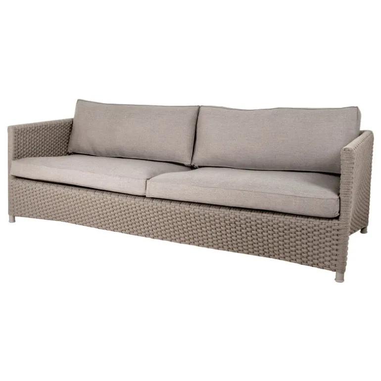 Cane-lines Diamond-soffa stoltserar med en strömlinjeformad design som passar perfekt i vilket sommarparadis som helst på balkongen eller uteplatsen. Soffan, som är designad av Foersom & Hiort-Lorenzen, är klädd i Cane-Lines högkvalitativa Natté-tyg som är utvecklat för att tåla både regn och sol, och stoppad med bekvämt, snabbtorkande skum som gör den idealisk för utomhusbruk.