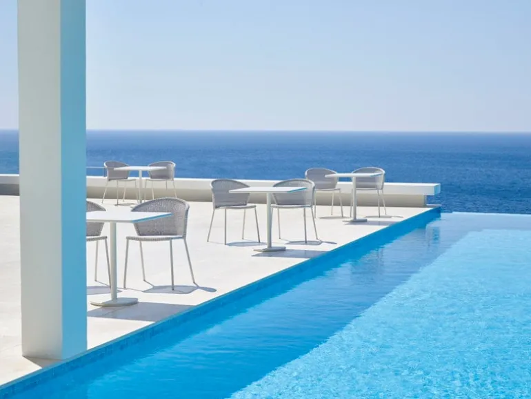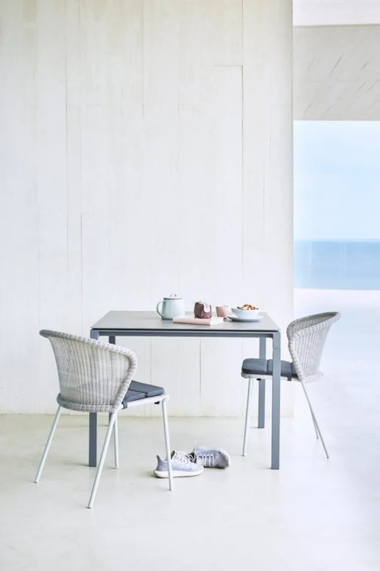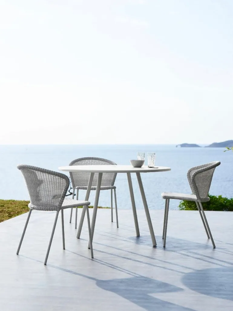 Stolen Lean från Cane-line ger terrassen, balkongen eller trädgården ett karaktärsfullt drag av modern, dansk design. Stolen Lean, framtagen av formgivarduon Welling/Ludvik, består av en rörram med bågformat ryggstöd och flätad, lätt genomskinlig sits, som ger stolen ett lättsamt och luftigt intryck. Polyetenfibrerna gör stolen underhållsfri och beständig mot UV-strålning, blekning och olika väderförhållanden. De lätta Lean-stolarna är stapelbara och kan förvaras i små utrymmen.