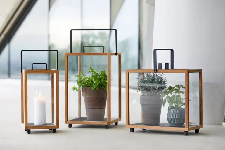 Lighthouse-lyktan från Cane-line är det bästa valet för alla terrasser eller trädgårdsmiljöer. Lyktan, som är tillverkad av naturligt teak, pulverlackerad aluminium och härdat klart glas, är ett säkert och elegant sätt att skapa en varm atmosfär inomhus eller utomhus. Njut av skandinavisk design och mörkande nätter medan du tittar på det mjuka fladdrande ljuset. Förutom som lykta kan Lighthouse också användas som ett miniväxthus för örter, kaktusar och andra krukväxter.