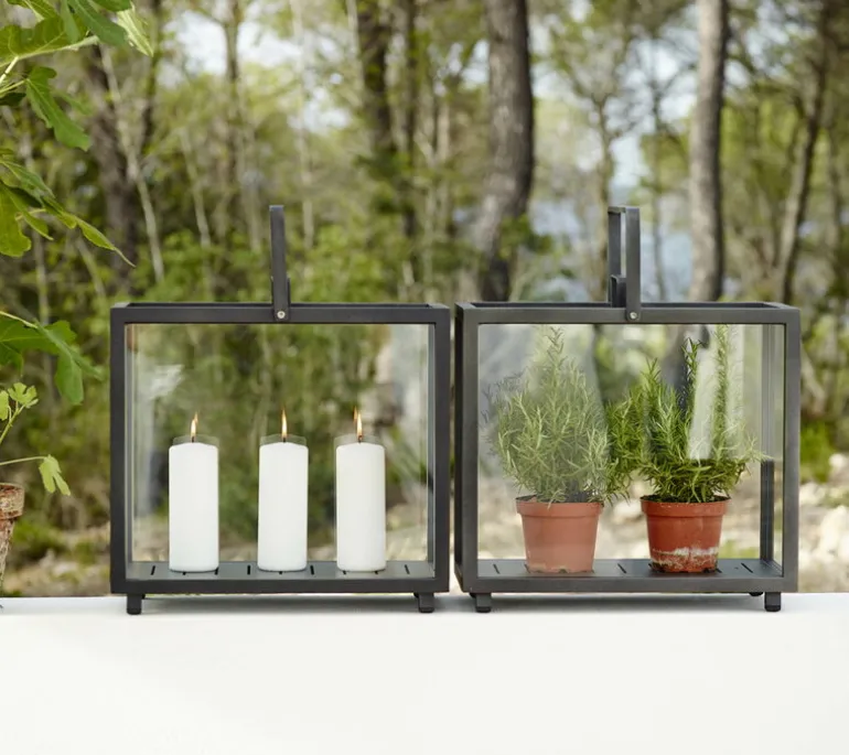Lyktan Lighthouse från Cane-line är grädden på moset för vilken terrass eller trädgård som helst. Lyktan, som är gjord av mörkt aluminium och transparent glas, är ett tryggt och elegant sätt att skapa en varm atmosfär inomhus eller utomhus. Passa på och njut av skandinavisk design medan solen går ner och du tittar på lyktans sken. Lighthouse kan även användas som ett miniväxthus för örter, kaktusar och andra små plantor.
