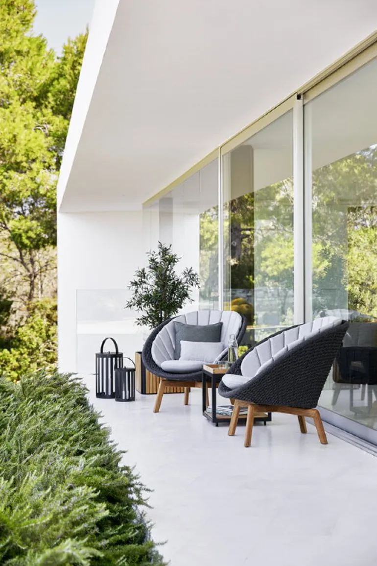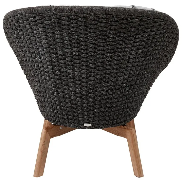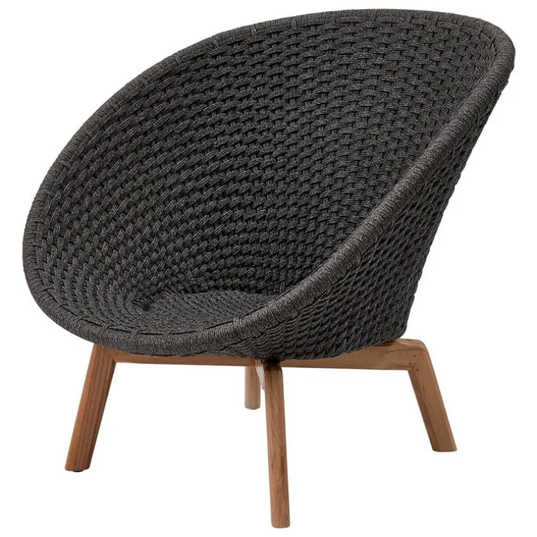 Peacock utomhus loungefåtölj från Cane-line är ett fint exempel på tidlös dansk design, perfekt för uteplatsen, balkongen eller trädgården. Loungefåtöljen, som är designad av Foersom & Hiort-Lorenzen, består av en bas i teakträ och en mjuk, flexibel sits i polypropen. Den koppformade sitsen är vävd av Cane-lines eget Soft Rope-material, som är speciellt utformat för utomhusbruk. Det mycket väderbeständiga materialet behåller sin färg och form i flera år, oavsett om det regnar eller skiner. Teakträbasen kommer långsamt att utveckla en vacker grå patina som är typisk för det naturliga materialet.