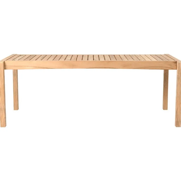 Precis som de andra möblerna i AH Outdoor-kollektionen har bordet/bänken tillverkats av certifierat teakträ. Det tåliga materialet åldras vackert, och går från varmbrunt till aktningsvärt silvergrått. Om du vill behålla originalfärgen behöver du olja in möbeln innan du använder den för första gången och sedan återkommande med jämna mellanrum.
