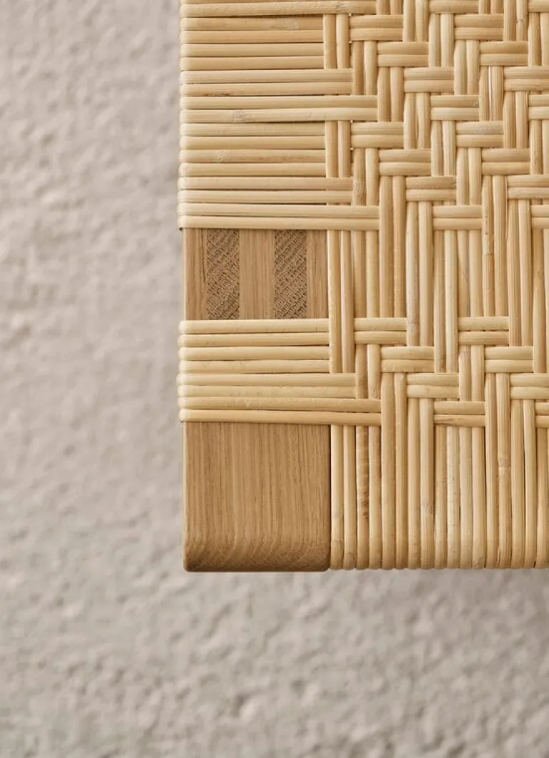 Bordsbänken BM0488L passar in i husets alla rum – du kan använda den som ett sidobord i vardagsrummet, som ett extrabord i köket eller som en bänk vid fotänden av sängen i sovrummet. Men observera att denna fina rottingväv inte är lämplig som sittmöbel. Bordsbänken är handgjord i Danmark.