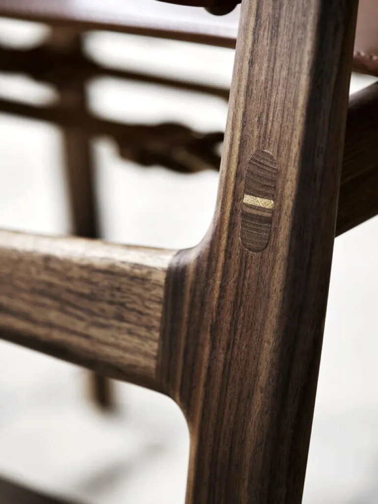 BM1106 Jägarestolen är en fascinerande kombination av lyxiga och karaktärsfulla naturliga material. Den noggrant tillverkade massiva träramen med skicklig fogning kompletteras av ett sadellädersäte och ryggstöd, som är fästa vid ramen med enkla metallremmar. Flexibiliteten i sätet kan därför enkelt justeras vid behov. Handgjord i Danmark är Jägarestolen en tidlös designklassiker som också lätt hittar sin plats i moderna interiörer.
