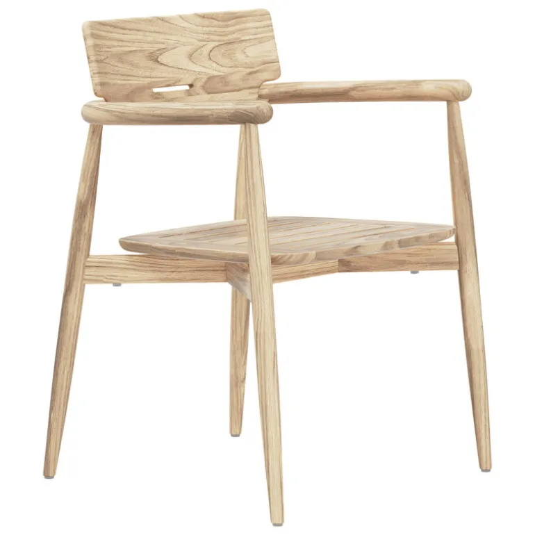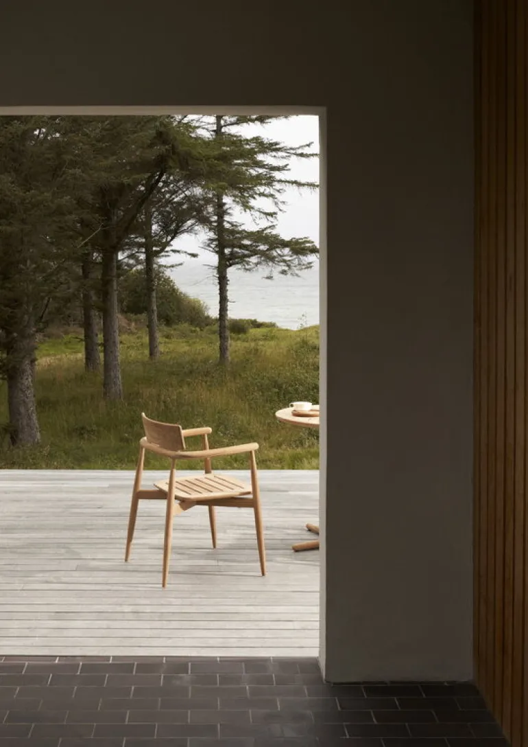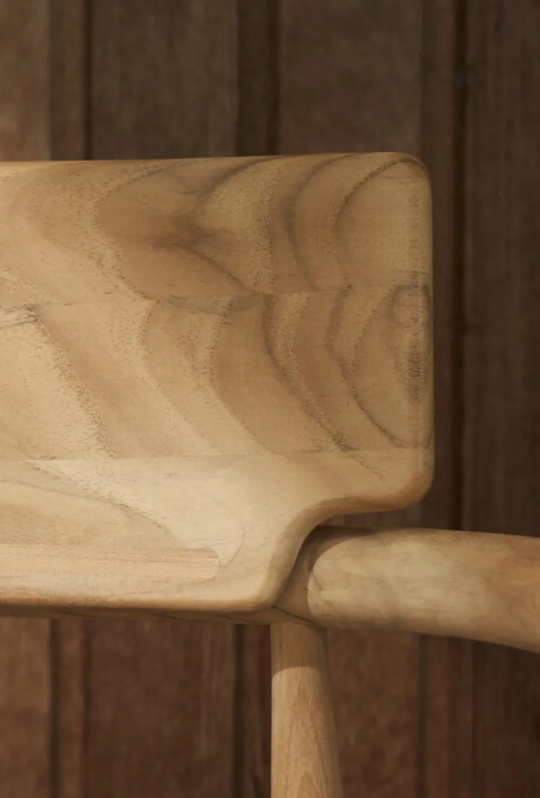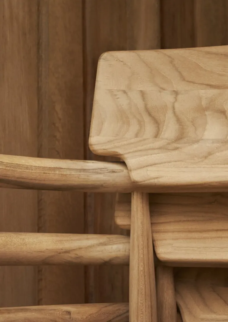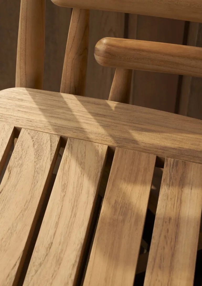 Carl Hansen & Søns matstol Embrace E008 tjusar med sin unika stil, där träets naturliga skönhet och skiftande ådringsmönster förenas med stolens eleganta konturer. Trädgårdsstolen, som har formgivits av EOOS, är tillverkad av obehandlad teak, som är särskilt väl lämpad för utomhusbruk. Materialet är inte bara tåligt, utan får genom att användas även en patina med tiden, som ger utomhusstolen Embrace en ännu mer unik framtoning allteftersom åren går. Om du föredrar den ursprungliga färgtonen rekommenderar vi att du behandlar dina teakmöbler med ett lämpligt impregneringsmedel för teak.