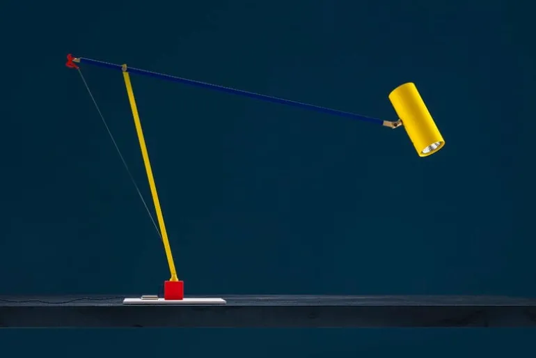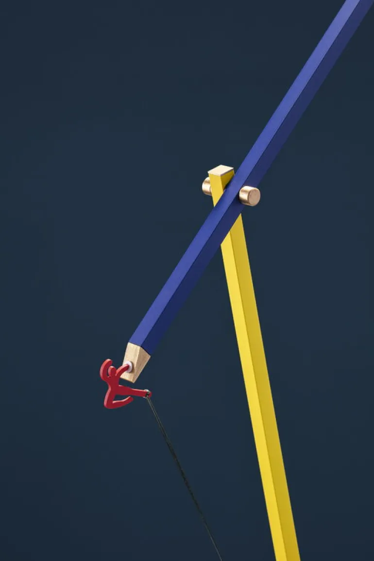 Catellani & Smiths bordslampa Ettorino kombinerar den precisa, återhållsamma estetiken hos klassiska arkitektoniska lampor med livfulla primärfärger. Målad i blått, gult och rött har bordslampan två smäckra aluminiumarmar och en cylinderformad skärm som innesluter en integrerad LED-ljuskälla med justerbar vinkel. Charmiga mässingsleder ger en elegant touch medan en liten, röd dansare på ena änden av armen ger en lekfull detalj, med en metalltråd som sträcker sig från dansarens fot till en matchande, röd järnbas.
