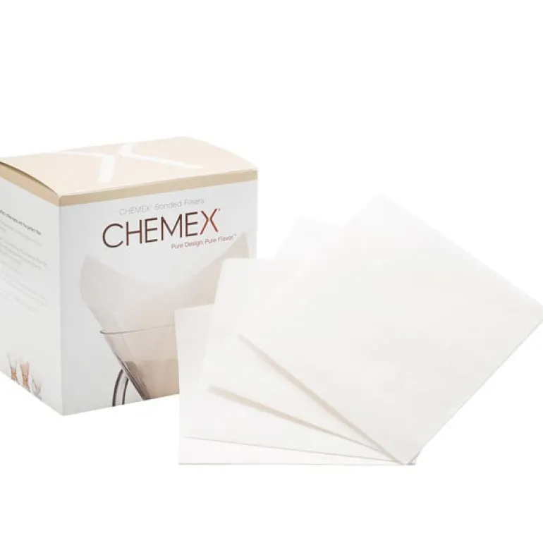 De patenterade Chemex FS-100-filtren passar perfekt till Chemex-kaffebryggaren som brygger 6 koppar. En förpackning innehåller 100 kvadratiska filter, som tar bort alla oönskade partiklar och gör kaffet garanterat smakrikare.