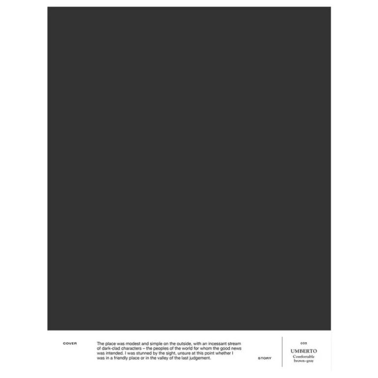Nyansen 035 Umberto är elegant och stämningsfull, och ger rummet ett mildare uttryck utan att fördunkla det. Den fina mörkbruna tonen är ett smakfullt alternativ till svart – den djupa nyansen suddar ut rummets kanter och omsluter det i en stilla omfamning. Nyansen har skapats av Ulla Koskinen och passar perfekt ihop med klassiska, nedtonade vita färger, exempelvis betrodda naturvita nyansen 034 Elena. Den lågglansiga färgen ger en mjuk och sammetslik finish på den målade ytan.