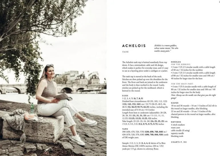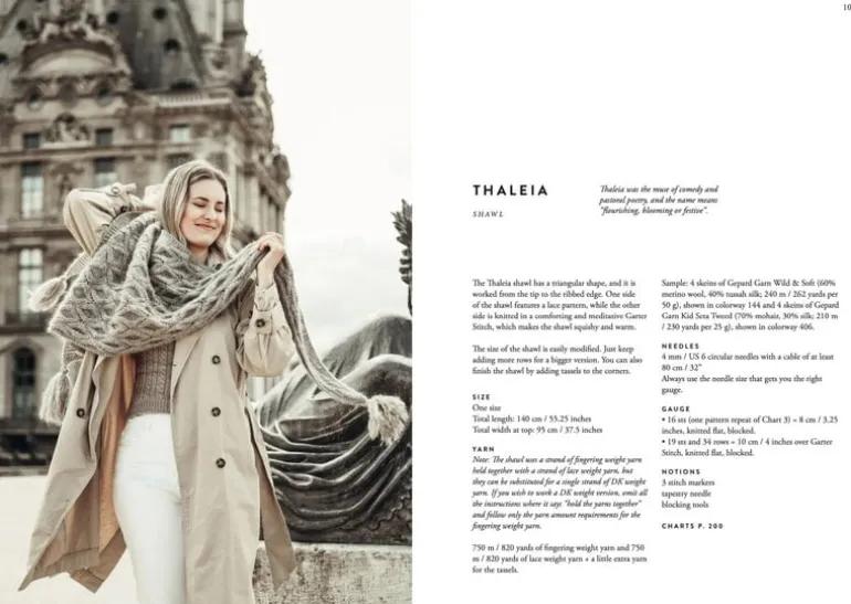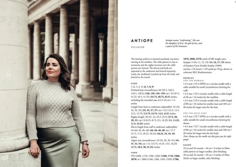 A classical, timeless theme weaves an enchanting thread throughout the book, with knitwear names drawing inspiration from ancient Greek mythology. Set against the soft, powdery backdrop of Paris, these elegant Scandinavian knits are perfect for modern-day urban muses.