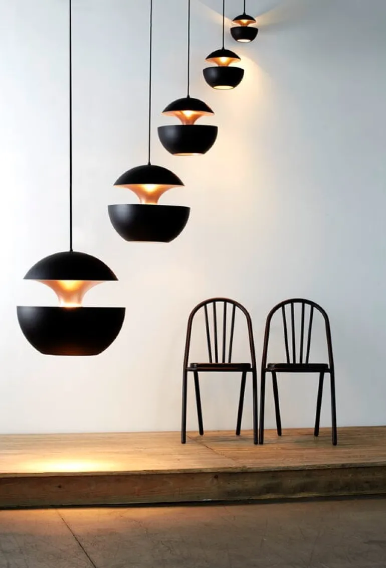 Bertrand Balas pendellampa Here Comes The Sun 175 är en klassiker inom fransk belysningsdesign och har återlanserats av DCW éditions. Pendellampan HCS 175 kombinerar en svart utsida med en glänsande insida i koppar. Den mäter 17,5 cm i diameter, vilket gör den passande även för mindre utrymmen.