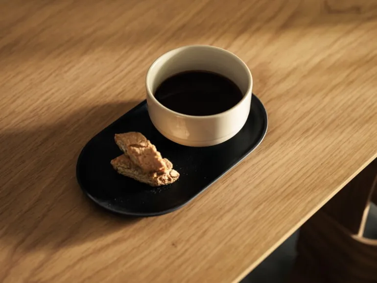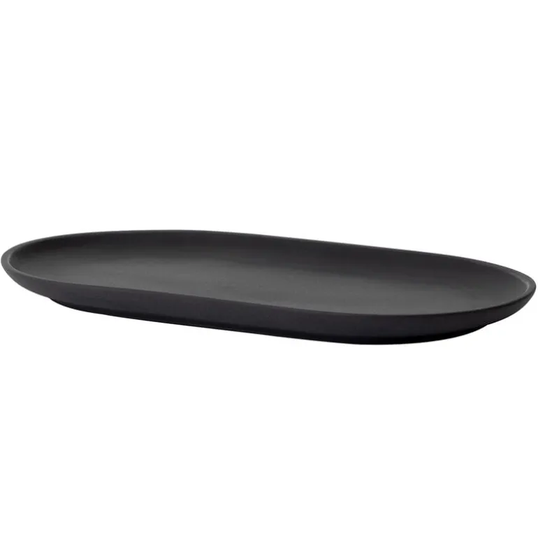 Sand Secrets-tallriken från Design House Stockholm är tillverkad av högbränt stengods. Du kan använda den ovala tallriken för att servera ost eller sushi, men den förenklade tallriken hittar också sin plats utanför köket: den kan användas som en bricka för kosmetikburkar i badrummet eller små dekorativa föremål i hallen.