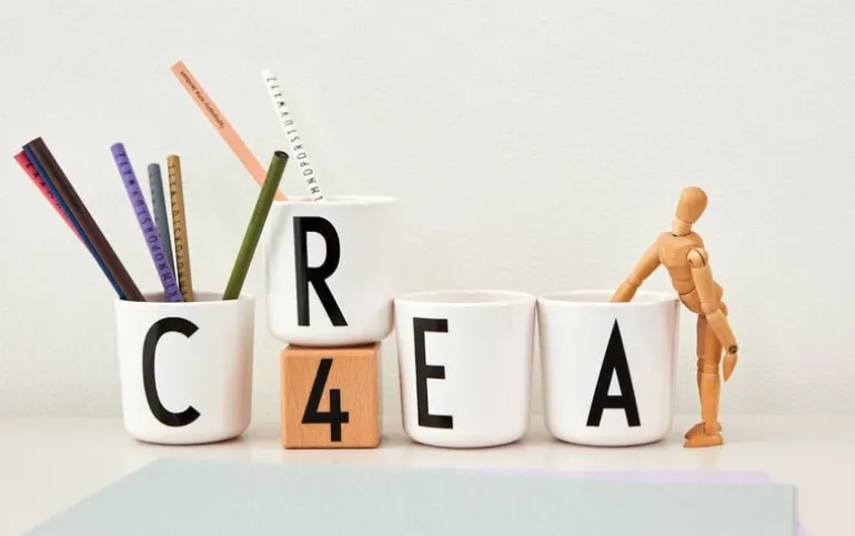 Design Letters barnmugg pryds av en bokstav efter ditt val i den tidlösa typografin designad av Arne Jacobsen. Den världsberömda arkitekten skapade typografin 1937 för Aarhus stadshus, där bokstäverna sedan dess har använts för informationsskyltar både utanför och inuti byggnaden.
