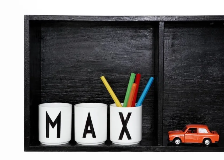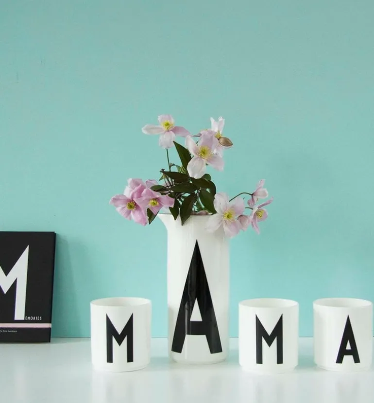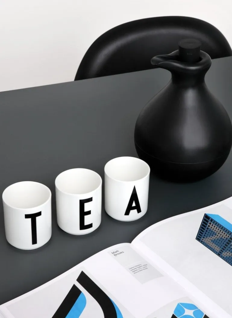 Design Letters porslinsmuggar har en bokstav i Arne Jacobsens tidlösa typsnitt, och du väljer själv vilken bokstav du vill ha. Använd muggen till kaffe, pennor, din tandborste – eller välj ett ”S” och ha socker eller salt i den. Muggarna blir också fina personliga presenter. Muggen är tillverkad av fint benporslin.