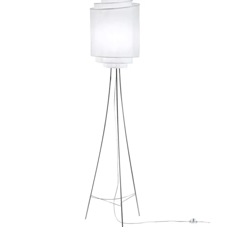 Skärmen på golvlampan Helmat är en textilspiral som hänger fritt. Lampan sprider ett mjukt och behagligt ljus kring sig. Strukturen bygger på spänning som håller ihop delarna. Textilen går att ta bort för rengöring och strykning.