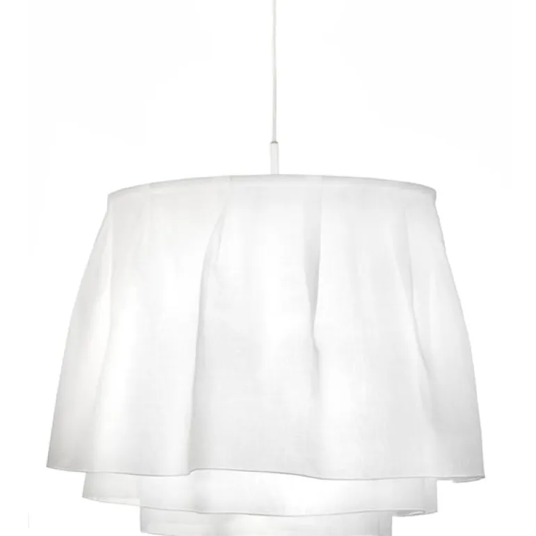 Designern Petri Vainio skapade lampan Juhla för att göra vardagen lite roligare. Pendellampan liknar fållen på en kjol och för tankarna till Art Nouveau-eran när det var vanligt att använda textil i pendellampor. Det veckade brandsäkra tyget flyter på ett livligt sätt, vilket gör varje Juhla-lampa unik. Lampan har en nordisk och romantisk själ som passar i alla typer av rum.
