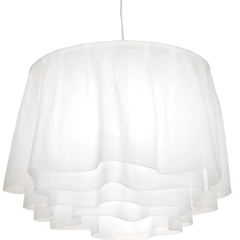 Designern Petri Vainio skapade lampan Juhla för att göra vardagen lite roligare. Pendellampan liknar fållen på en kjol och för tankarna till Art Nouveau-eran när det var vanligt att använda textil i pendellampor. Det veckade brandsäkra tyget flyter på ett livligt sätt, vilket gör varje Juhla-lampa unik. Lampan har en nordisk och romantisk själ som passar i alla typer av rum.