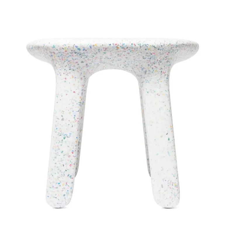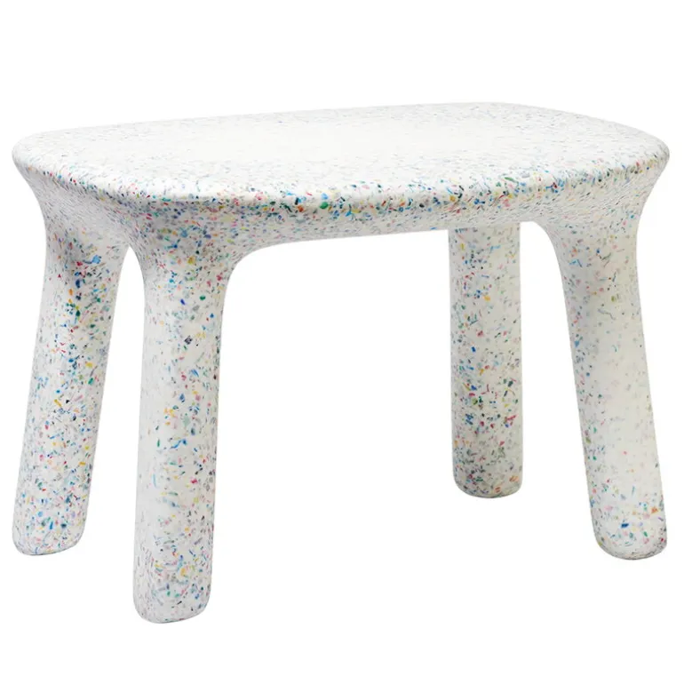 Kanske förvånas du över materialet i bordet, för Luisa är nämligen tillverkat av återvunna plastleksaker – de färgglada små prickarna som pryder bordet har alltså varit barnleksaker i ett tidigare liv! Den mjuka designen och de lekfulla färgerna är estetiskt tilltalande även för föräldrarnas ögon, vilket gör att bordet Luisa inte bara blir ett perfekt tillskott i barnkammaren, utan också i andra rum i bostaden.